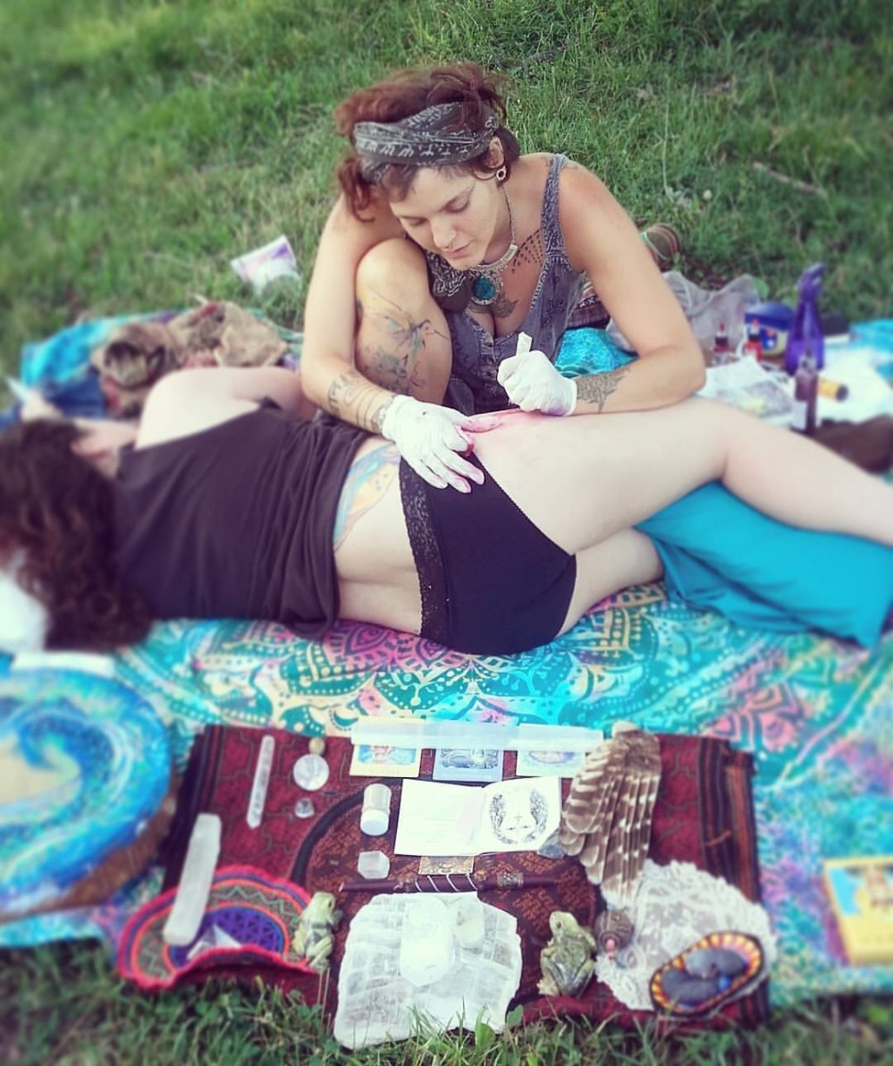 Life is the ceremony, and you are the medicine. Ritual tattoo is a practice of reigniting our ancestral knowledge in our process self expression and self love. Combining intuitive, shamanic, and galactic methods of energetic transmutation, we can gratefully benefit from the painful state induced by tattooing to heal ourselves.